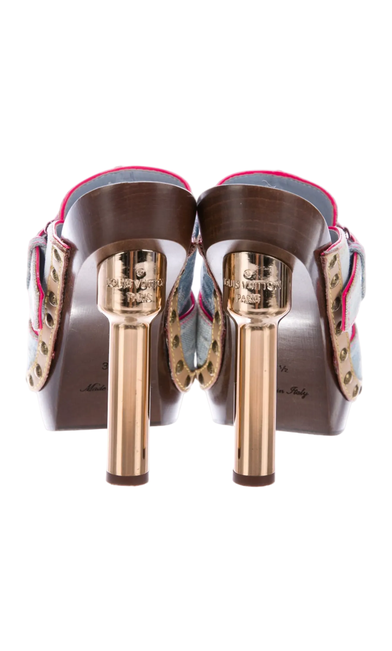 Vintage Louis Vuitton denim clog heels marked a size 6.5 but fit a size 6.5-7